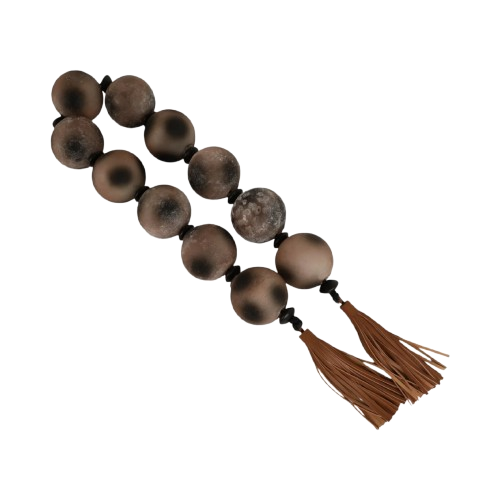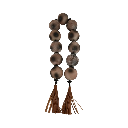 GUIRNALDAS DE VIDRIO MARRON PASCO CON BORLA DE CUERO